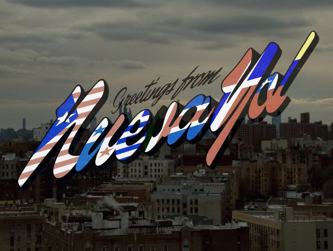 An industrial shot of the Bronx, “Greetings from New York” written in cursive, the city’s name filled with Latin American flag colours, reinforces how Latino experiences are intertwined with U.S. history, countering narratives that depict the country as all white, English-speaking, and Christian.