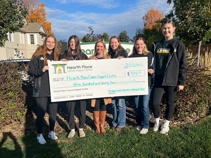 The Durham Lords volleyball teams raised just over $900 at their games on Friday while also bringing awareness for breast cancer and support for the Hearth Place Cancer Support Centre.