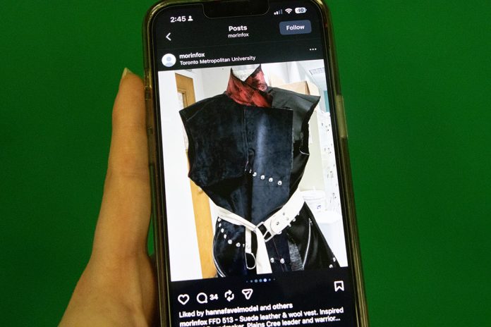 Brandon Morin Fox is building a fashion practice where cultural storytelling, technical craftsmanship, and clear vision converge. The Chief Poundmaker-inspired vest does more than honour history, it positions Indigenous fashion as contemporary, technically skilled and very much alive.