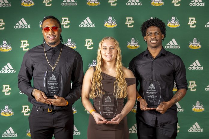 Amber Edgerton with women’s rugby won the Margaret Greenley Female Athlete of the Year award, while Devonne Henry with men’s rugby and Jasean Elliott with men’s basketball earned the William Avery Memorial Male Athlete of the Year honours.